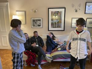 According to Sadie the kids awoke at 5 am to open their stocking presents. As we walked over from the hotel we received our 2nd call to see how long before we would arrive so that they could open the rest of their presents.
