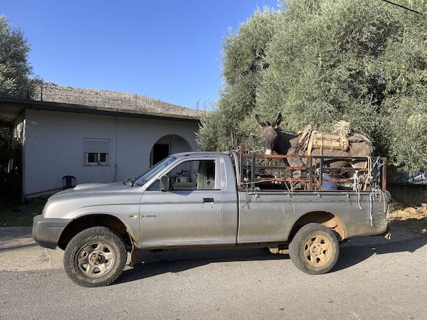 On our walk back from breakfast we encountered a rather odd sight for a Londoner, a mule on a truck.