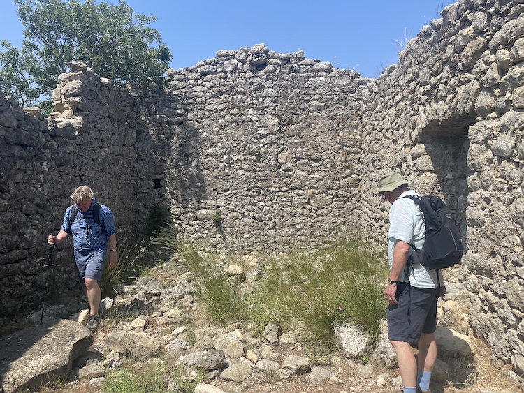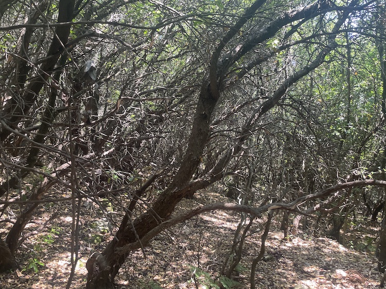The chapel was the highest point on our walk and we began our downhill journey in silence through this tangle of trees. At the end we arrived at a dirt track exposed to the midday sun. The heat made the descent uncomfortable.