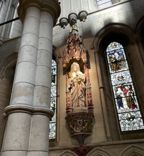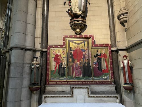 Before we arrived at the restaurant Richard and Aida had turned up at our house to leave their car there as he had arranged to stay the night. We all travelled into town together and on our walk through Marylebone we stopped at the catholic church of St James’ Spanish Place. The building is actually situated in George Street. The church has connections with the Spanish Embassy dating back to the 17th Century although the current edifice was cont constructed until the 19th Century in a Gothic Style. From the outside you would be surprised to see how magnificent it is when you enter.