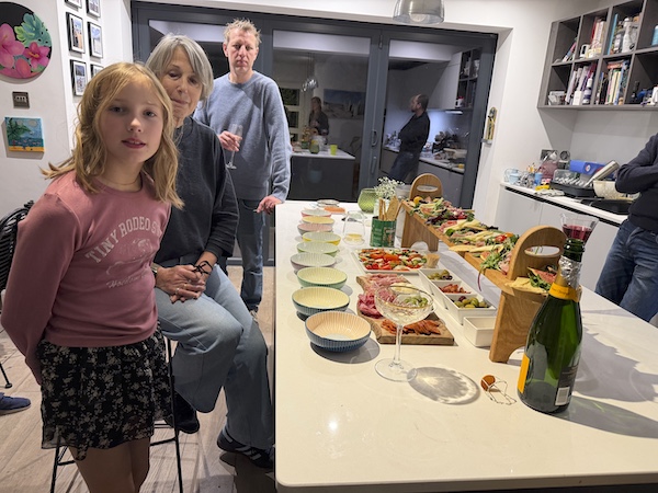 Ava spent a long time laying out nibbles, like a smorgasbord on the kitchen island and after the visitors stopped arriving we ate the contents.